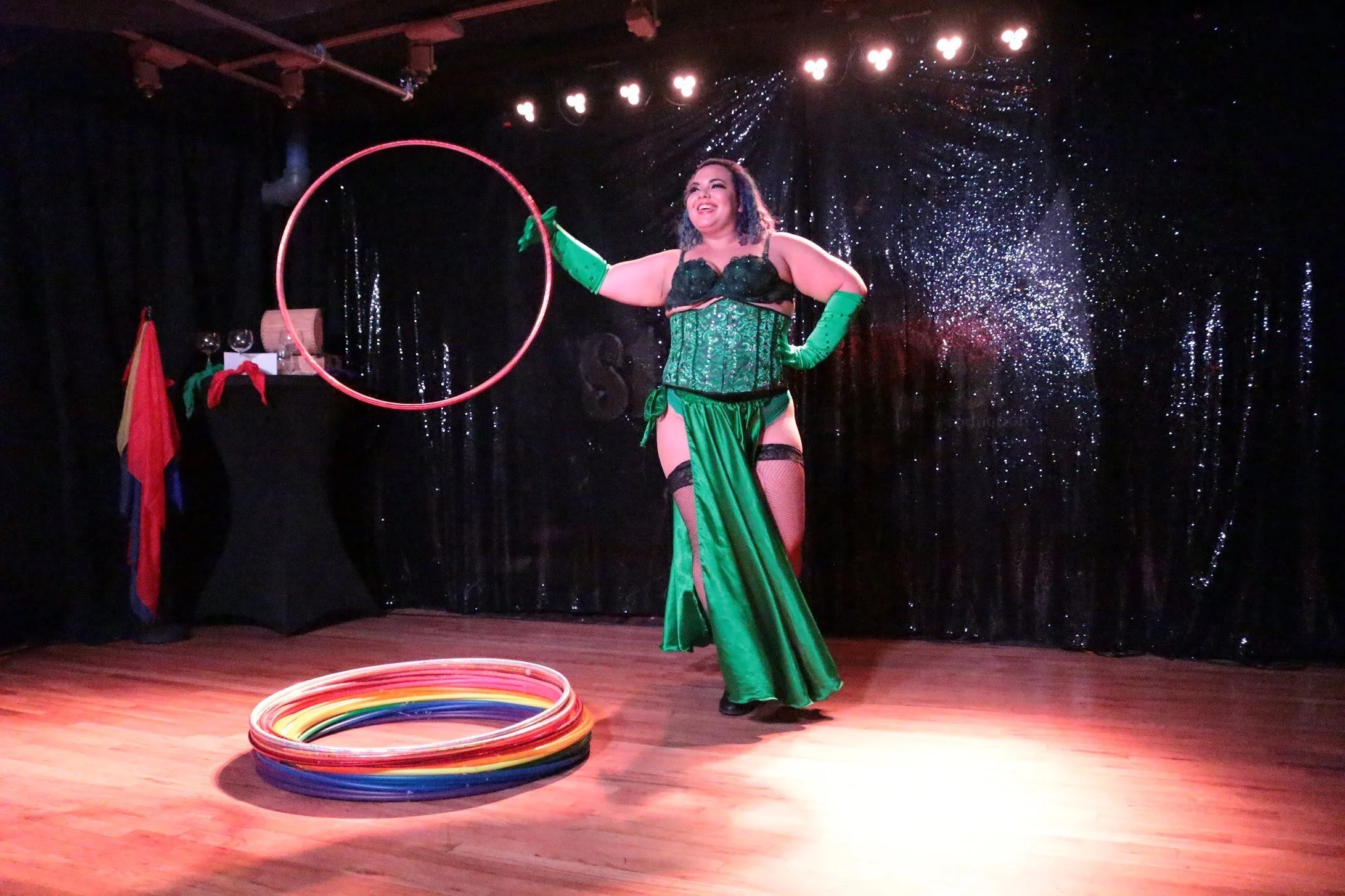 Ana Cruz is a multi-faceted performer who performs all over Denver, Boulder, and Beyond! She has 10 years of circus performing under her belt and she specializes in hoops, fire, aerial, bellydance, and burlesque.